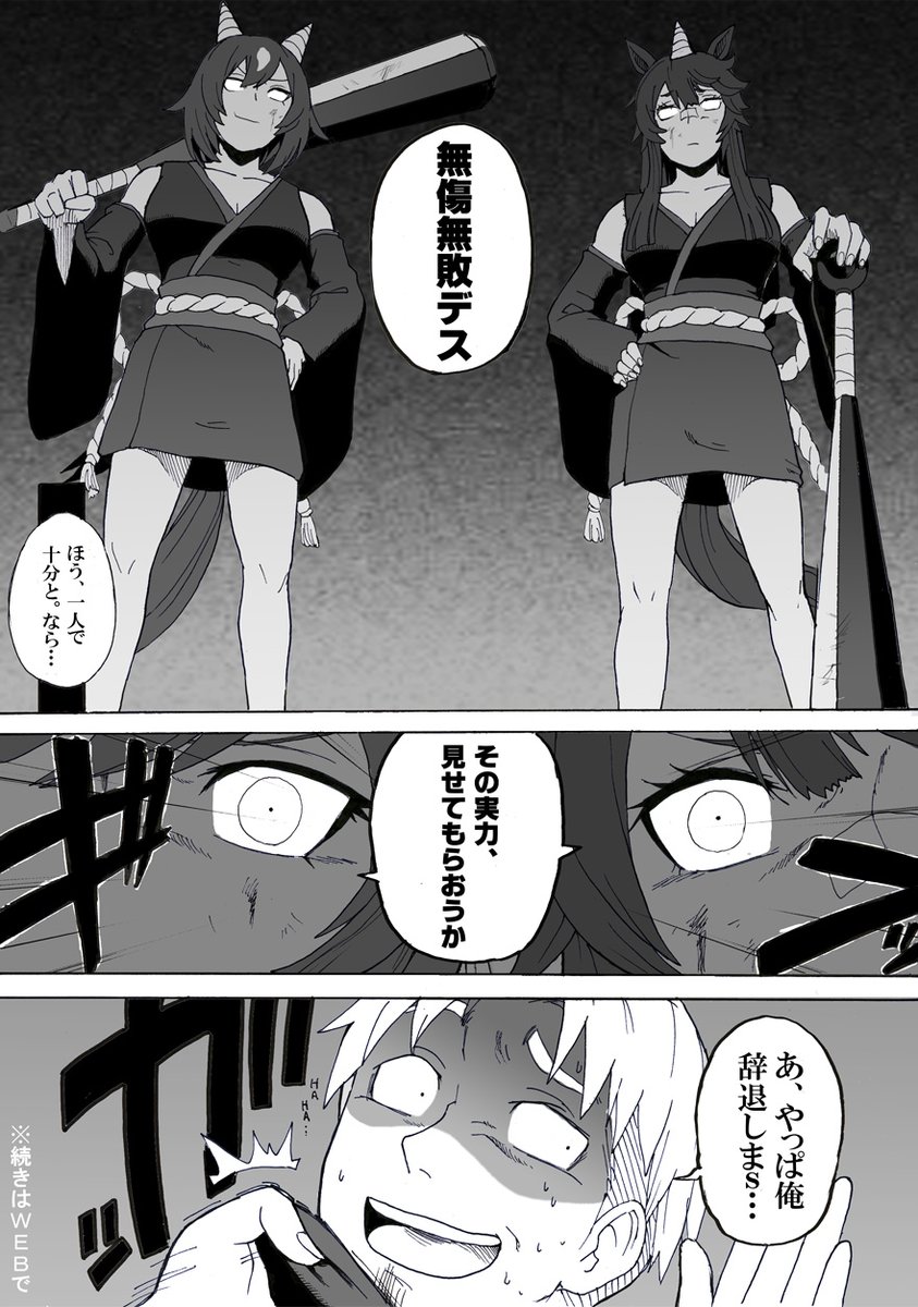 トレーナー所有権主張騒動(終) 弟「とれない…どうしよ」 姉「削いどく?」 ライス「ダメだよ!お姉さま!!」 #ウマ娘 #トレーナー #イラスト #漫画 #絵柄が好みって人にフォローされたい #夏の創作クラスタフォロー祭り
