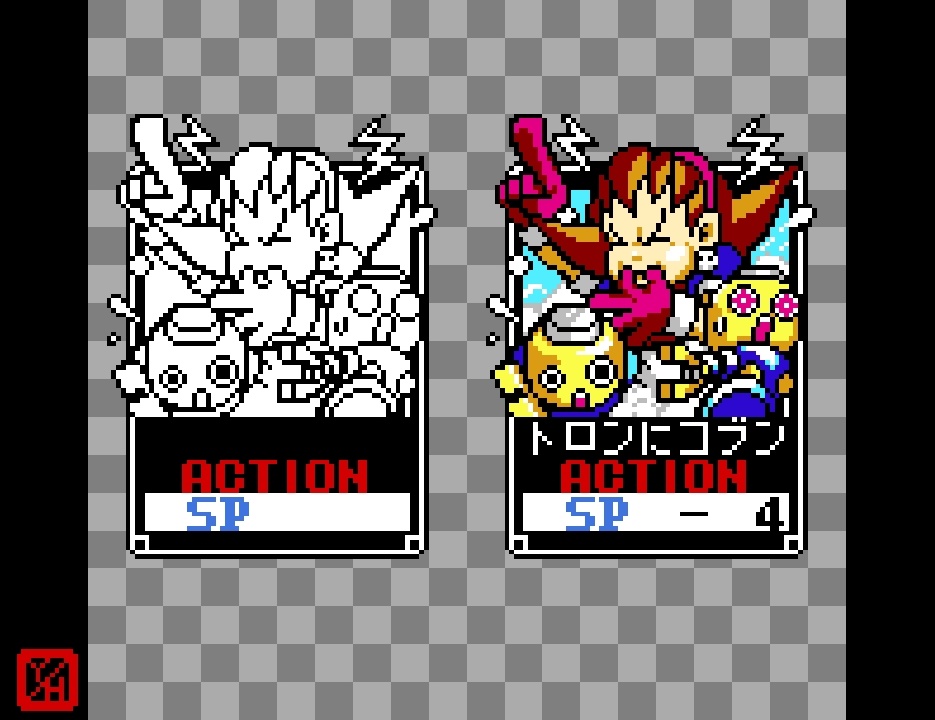 NPC『激突カードファイターズ』のアクションカード『トロンにコブン』を模写してみたゾ。 《カードテキスト》 〈トロン&コブン〉 トロン「全員、しゅつどー!」 コブン「はいはーい!」 #カードファイターズ #トロンにコブン #ネオジオポケットカラー #ドットアーティスト #ドット絵 #レトロゲーム