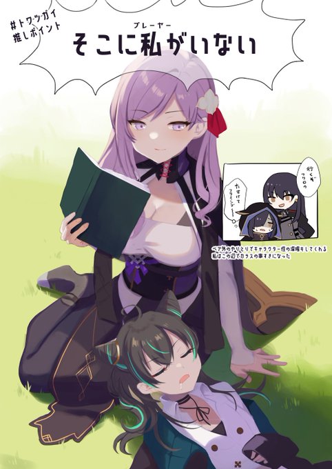 トワツガイ、リリースしてから割とやってるので4コマ描いてみました。こういう女性的な雰囲気の百合ソシャゲってあまりなかったですよね。この手のやつは、私は大体クールな子×女の子らしい子の主人公カプが最推しになります。 #トワツガイ #百合 #トワツガイの推しポイント