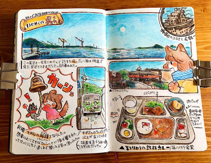 🎨広島のスケッチ旅まとめ✏️ 広島旅から旅日記描くのすごく好きになった気がします😊いつでも記憶を思い返せる宝物みたいなスケッチブックです。 #こんな仕事がしたい #ウォーキングスケッチ #トン活 #イラスト好きな人と繋がりたい