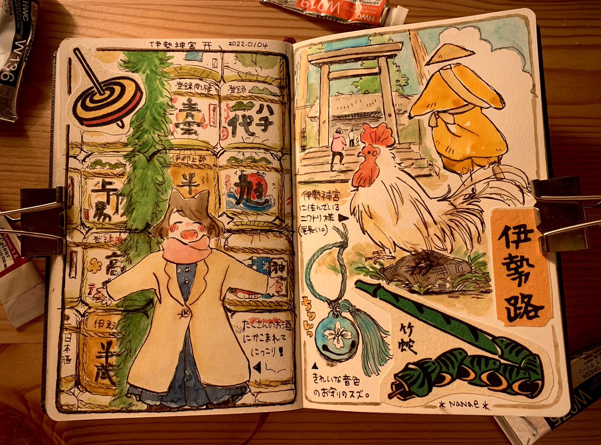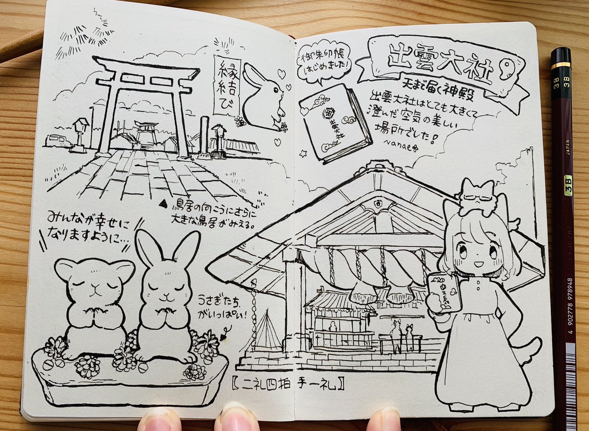 ⛩島根絵日記⛩ 神様の集まる場所の島根の旅! 寝台列車:サンライズ出雲に乗ったり、出雲大社で御朱印帳をはじめたり温泉に行ったり♨️たくさんのはじめてを体験したすてきな旅になりました🚃 #ウォーキングスケッチ #トン活 #こんな仕事がしたい #イラスト