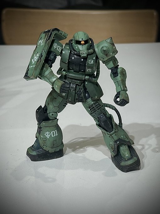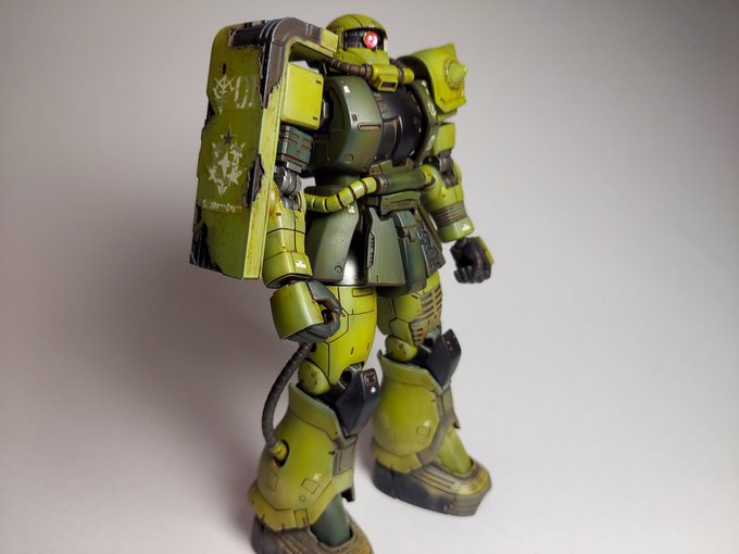 ドアンザクです。 ウェザリング楽しかった~。 右肩のシールドの塗り分けが大変でした。 #ガンプラ #ドアンザク #ガンプラの画像貼るとRTされると聞いて #ガンプラは自由だ #ガンプラ好きと繋がりたい #ザク