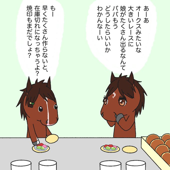 今日のドゥラ家 オルフェ家も描きたかったんだけど、描ききれなかった💦 何かタイくんがお兄さんになったなぁと謎の視点で感動したりして…桜花賞おめでとう🌸 #ドゥラメンテ #スターズオンアース #ベルクレスタ #タイトルホルダー 通販は明日4/13までです🎶 linktr.ee/crow_k