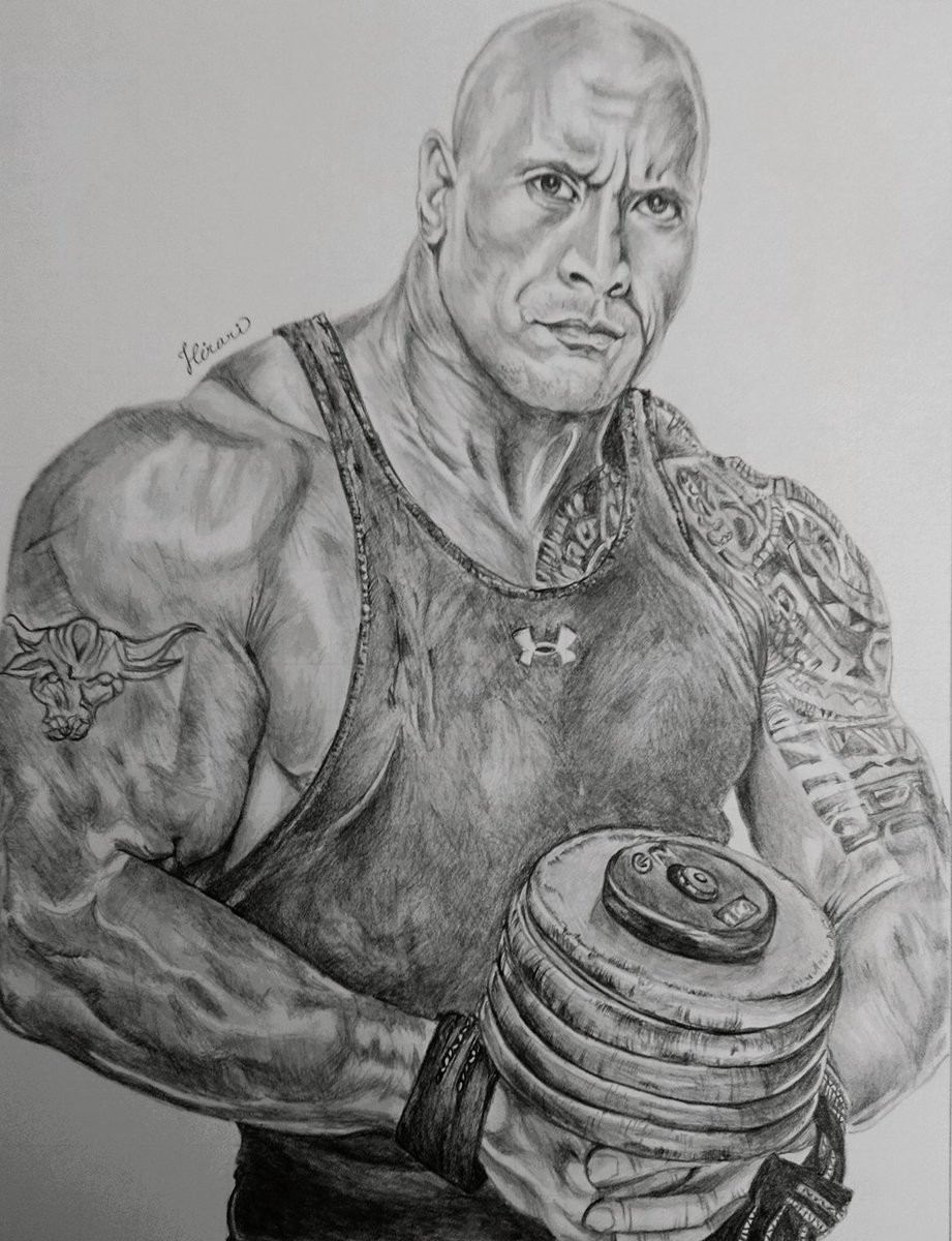ドウェイン・ジョンソン ザ・ロック様を描かせていただきました!筋肉をうまく描けるようになりたいと思っての挑戦で色々戸惑いましたがなんとか完成にたどり着けました✨ #DwayneDouglasJohnson #ドウェインジョンソン #鉛筆画 #似顔絵