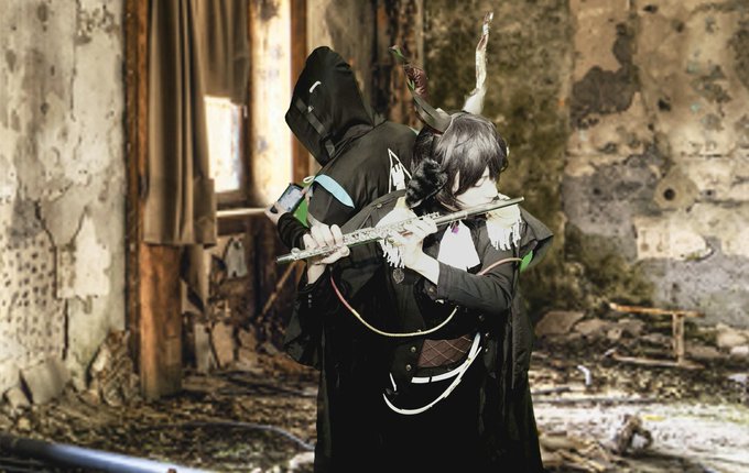Cosplay⚠︎ エーベンホルツ & Dr. 開演は間近だが、どうやら我が観衆はもう待ちきれないようだな? そのようだ…建物の外へ、【無響の声】。 Dr. @01134935Ankyo エーベンホルツ @Yusa_S_Harness Photo オオアサ_イナリさん@Inari_Ooasa #Arknights #ドキッ男だらけのコスプレ撮影会