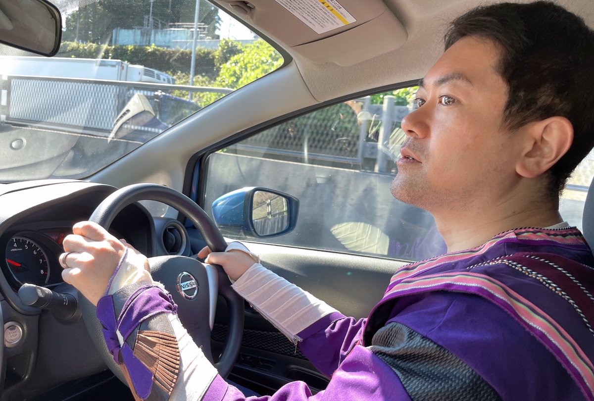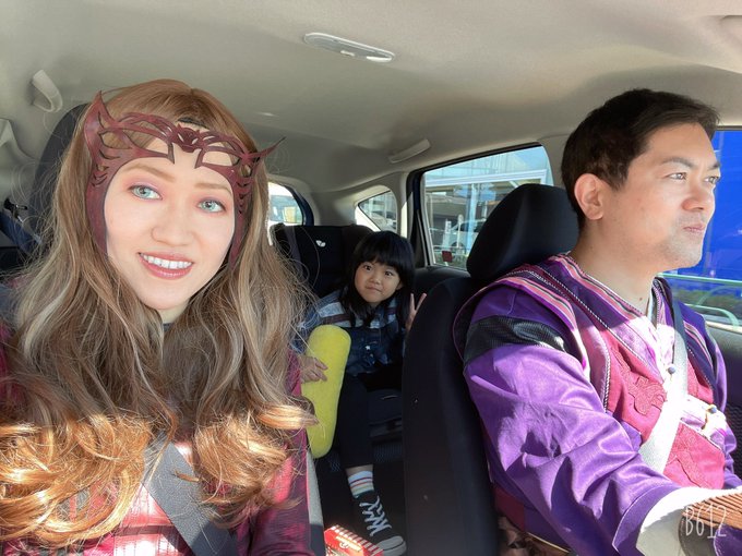 旦那は念願のウォンさんコス😂 髪の毛をスターロードコスの為に青髪から金髪にして、今度は金髪から黒髪へ👱🏻♂️→👨🏻(笑) 黒染めは一時的なスプレータイプですが、髪の色が短期間で変わり過ぎている…😅 #移動中 #Dハロ仮装 #マーベル仮装 #Dハロ仮装2022 #ドクターストレンジMoM