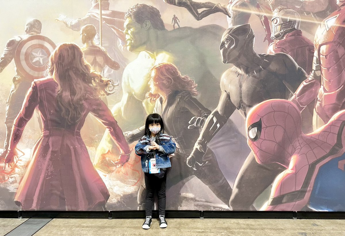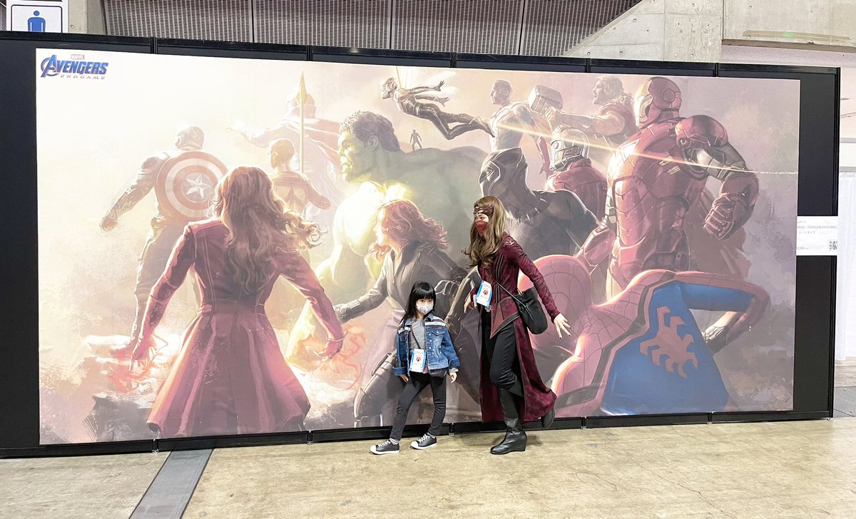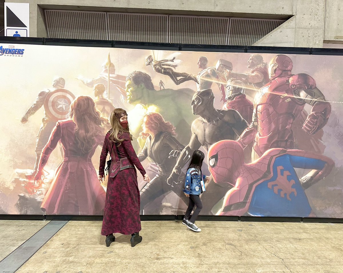 フォトスポットの前で写真撮影📸 ミニアメリカチャベスが一番ポーズが上手でした😂👏🏻 もっと研究しないとな🫣💨 #ウォン #東京コミコン #フォトスポット #アメリカチャベス #東京コミコン2022 #東京コミコンコスプレ #スカーレットウィッチ #ドクターストレンジMoM