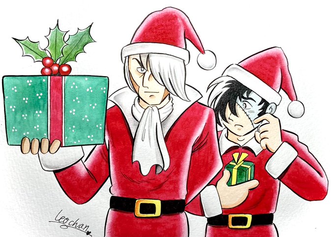 Xmasプレゼントでマウントを取るDr.キリコと、出遅れたブラック・ジャック🎁どちらから、もらいたい? #クリスマス・Xmasプレゼント #手塚治虫 #ブラック・ジャック #ドクター・キリコ #水彩画 #アナログ #イラスト王国