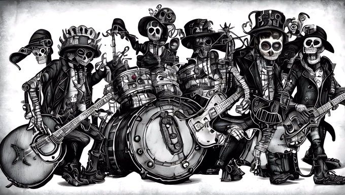『冒涜のマザーグース』ギグビデオ使用イラスト YouTube⇒ youtu.be/11vAB7WMW1A ※「カナシバリ・ブートレグ act.1」収録 配信ストア kxnxb.official.ec/blog/2023/02/0… #イラスト #illustration #digitalartist #digitalartwork #steampunk #cyberpunk #samurai #侍 #skull #ドクロ #骸骨 #スカル #髑髏