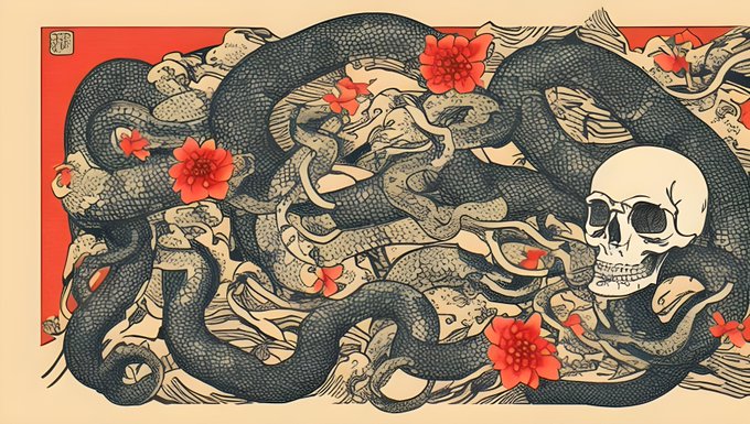 「THE EYES」リリックビデオ使用イラスト 「THE EYES」 youtu.be/_GcWdHu6Pf4 #イラスト #illustration #digitalartist #digitalartwork #ukiyoe #浮世絵 #skull #ドクロ #骸骨 #スカル #髑髏 #蛇 #ヘビ #snake