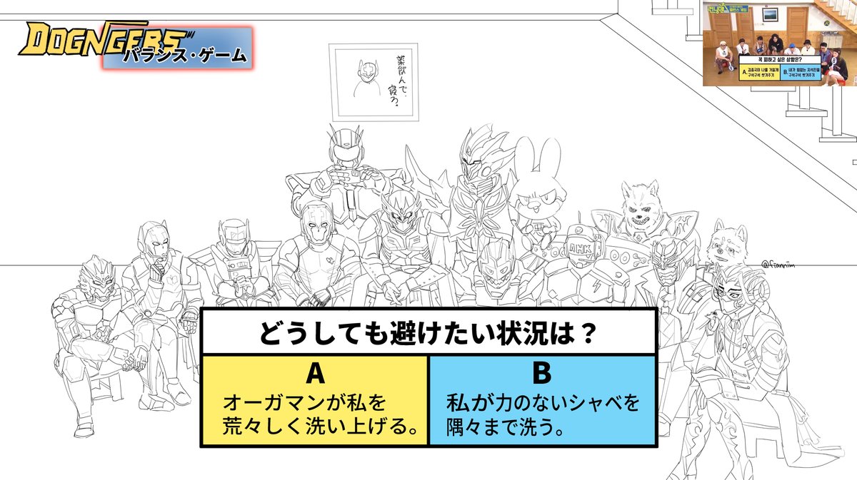 내가 그린게 가족사진인지 트레인지 알 수 없다... 개힘들다 진짜로... 밸런스 게임 하는 도겐멤버들. <한국어 日本語> #悪の秘密結社FANART #ドゲンジャーズ #ドゲンジャーズFANART #도겐져스