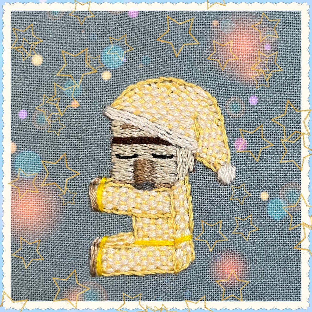 どうしても欲しすぎて自分で作っちゃった🍌💛ぬいぐるみ作った事ないし服も作った事ないけど自分で型紙起こして作りました!袖も作ったけど一旦これで休憩🍵所々ズボラ出てるけど今度リベンジして可愛いの作るんだ❤️🔥 #ドズル社ランド #はよ見ろやあ #スヤスヤおんりー人形