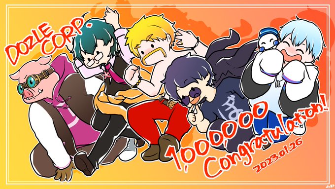 改めまして、ドズル社登録者数100万人、おめでとうございます! いつでもみんなが楽しくをくれるドズル社が大好きです! 記念パーティー、みんなで楽しみましょう! #ドズル社100万人記念 #ドズル社100万人記念パーティ #ドズル社アート