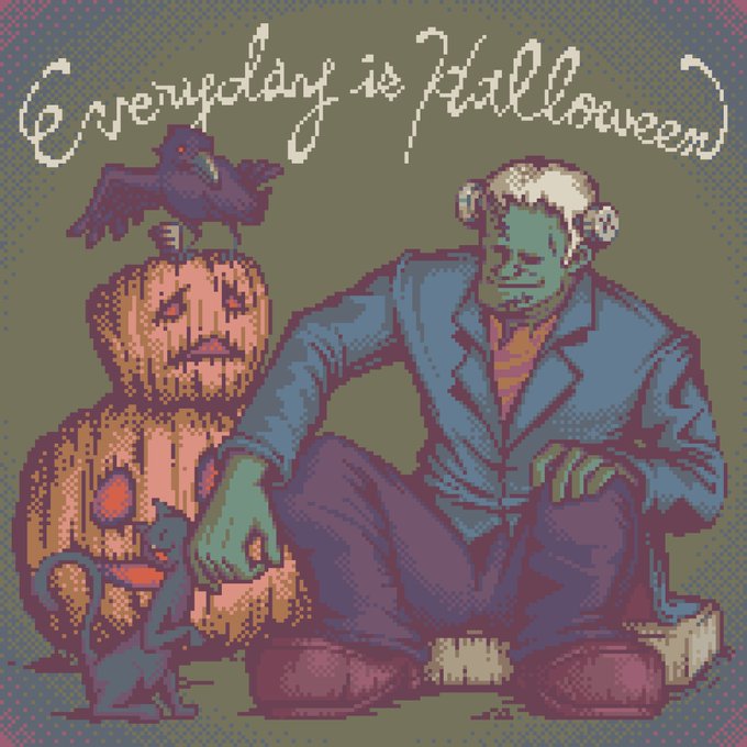 “Everyday is Halloween” 「俺たちゃ毎日がハロウィンだよな…♪」 #dotpictハロウィンドット絵コンテスト #Halloween #dotpict #pixelart #ドット絵 #ドットネコ