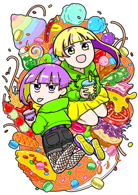 いろんなもん 先日pixivのイラコンに応募したイラストです! #イラスト #ドットミーでジブン創造イラコン #pixiv #食べ物 #オリジナル pixiv.net/artworks/98210…