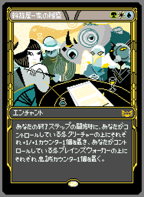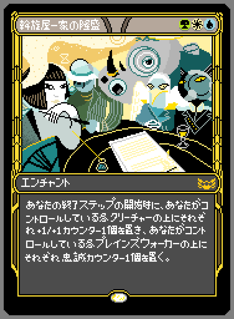 ライブ配信で、DTA(ドスドス・タイム・アタック)と言う新しい競技が生まれました!! そして作り上げられた新作ドット絵・・・ ニューカペナの街角から「斡旋屋一家の隆盛」です!! 記録は3時間、世界新記録です٩(´θ`*)و コメントおまちしてまーす!! #ドットEDH #mtgfanart