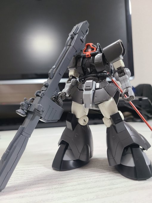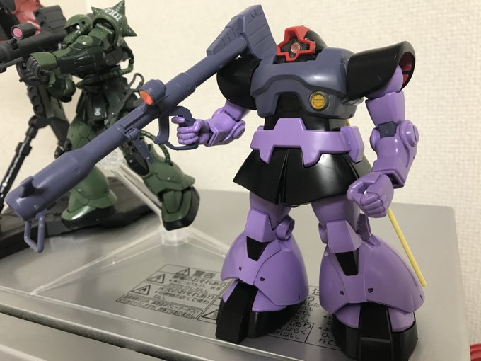 MGリックドム完成。武器は手首関節が緩くなったので持たせていません。 塗装はメカサフ後に水性ホビーカラーで軽くグラデーションを入れています。紫はすみれ色を使用。白いラインは塗装です。キットの出来が素晴らしいですね。 #ドムの日 #ガンプラの画像貼るとRTされると聞いて #ガンプラ