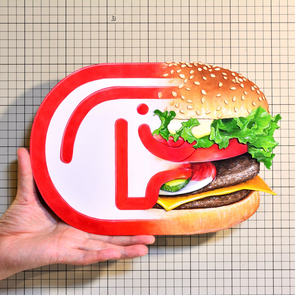 “ビッグドム トマト&チーズ”🍔🍅🧀 原画こんな感じ。 #ドムドムハンバーガー #ドムドム #イラスト #illustration #foodillust #foodillustration #copic #copicmarkers #切り絵 #コピック
