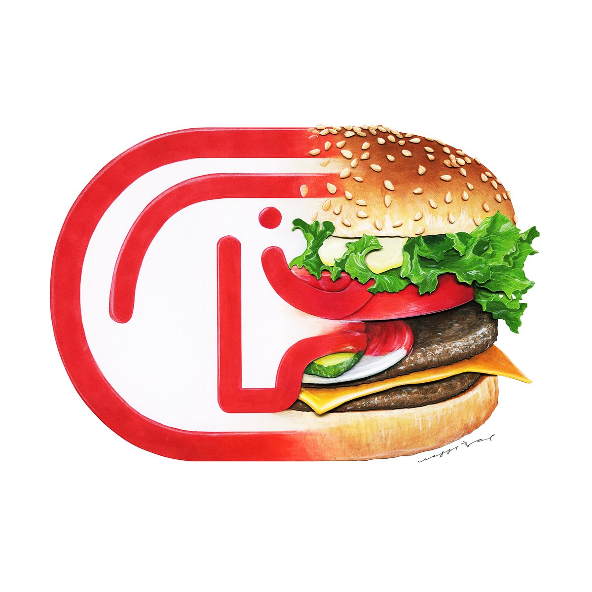 ドムドムハンバーガー “ビッグドム トマト&チーズ”🍔🐘🦣 #ドムドムハンバーガー #ドムドム #イラスト #illustration #foodillust #foodillustration #copic #copicmarkers #切り絵 #コピック
