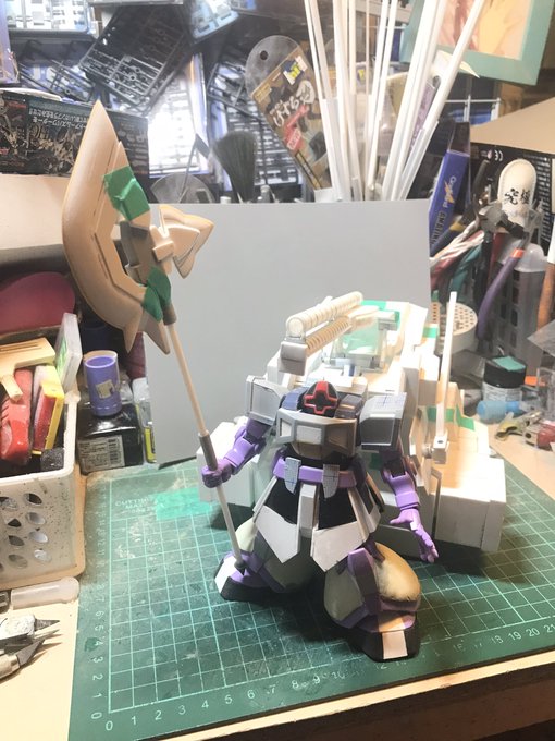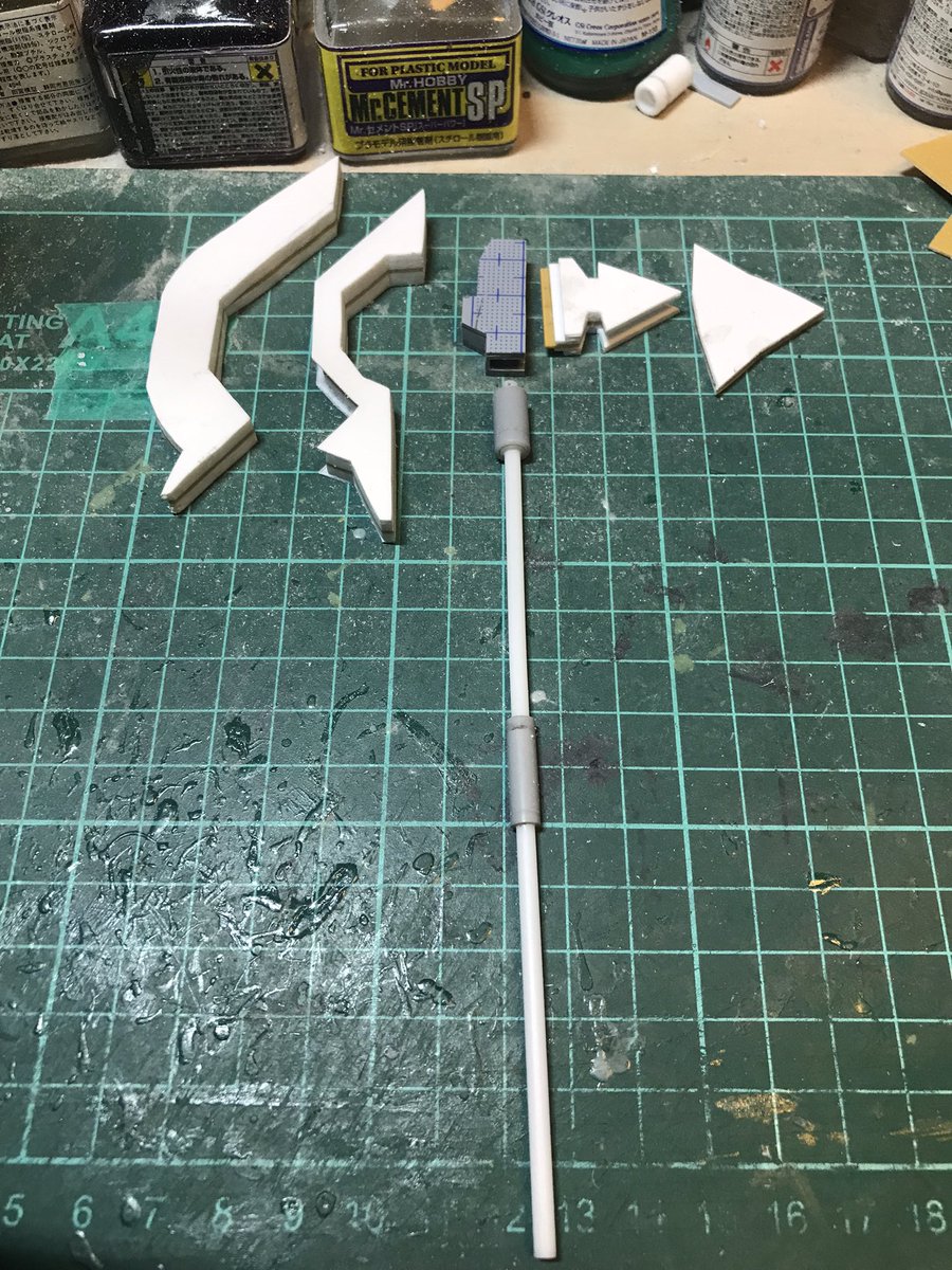 ドム製作40〜41日目 2日半かけてヒート・ハルバートをプラ板、プラパイプを使用してフルスクラッチしました これだけ巨大武器なので持たせるのも大変です パーツ分割してあります #ドム #ドム・ノーミーデス #バトオペ2 #ガンプラの画像を貼るとRTされると聞いて #ガンプラ好きと繋がりたい #ガンプラ