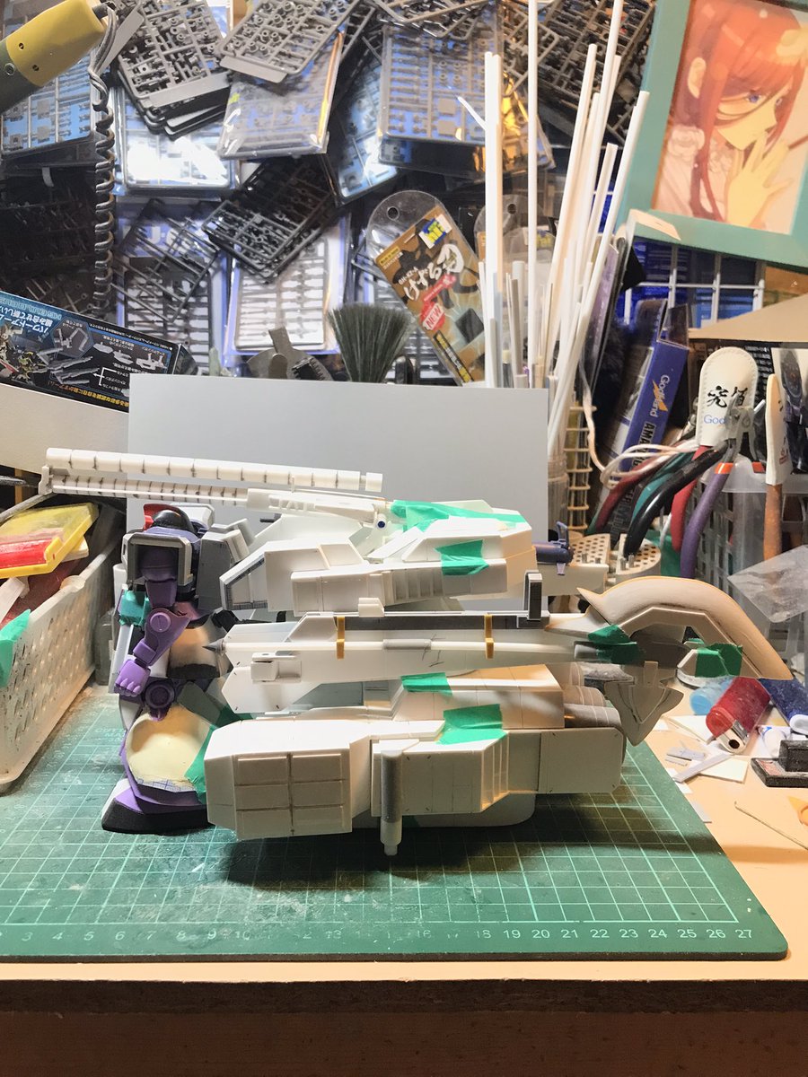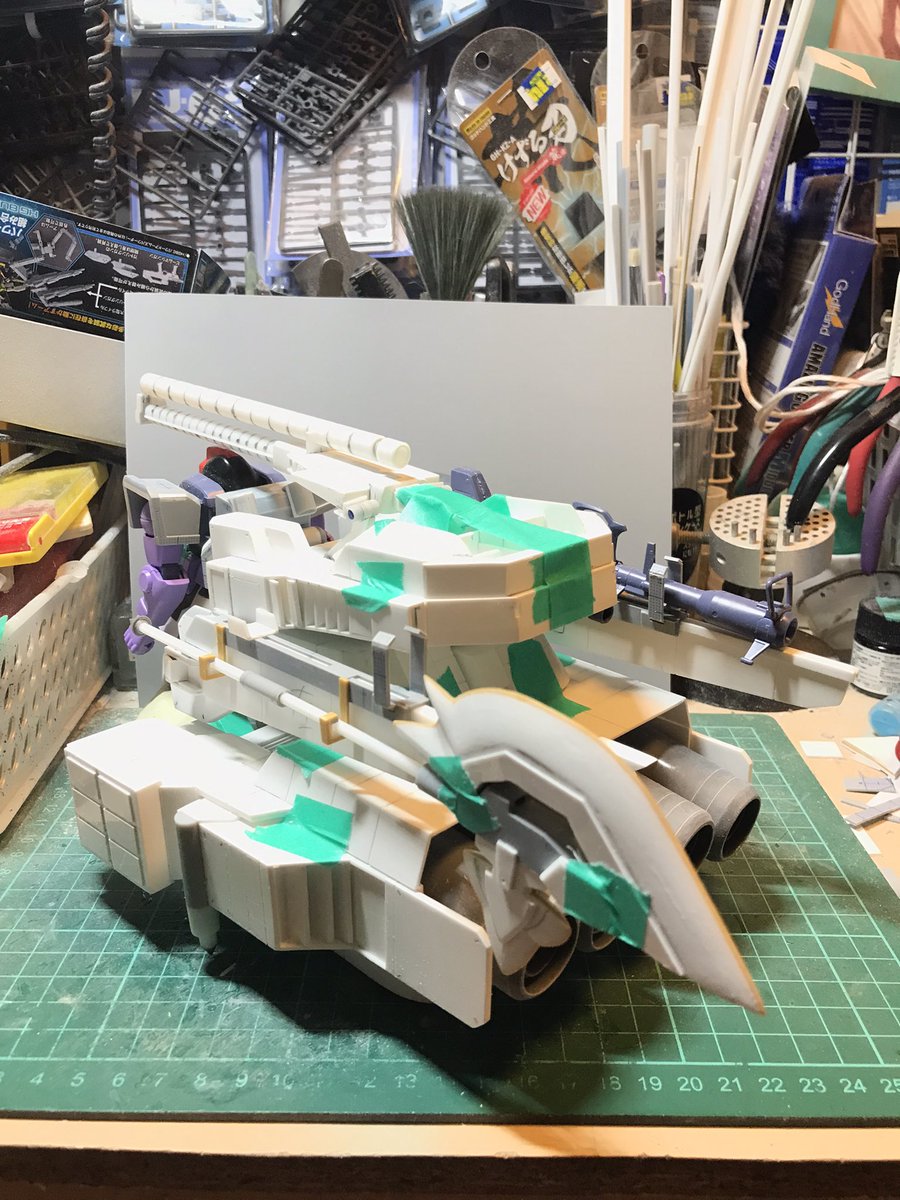ドム製作53〜59日目 やっと表面処理が終わりました〜 バックパックのディテールアップしました やっと捨てサフに入れます これから本塗装に入るまでかなり時間かかりそうです💦 #ドム #ドム・ノーミーデス #バトオペ2 #ガンプラの画像を貼るとRTされると聞いて #ガンプラ好きと繋がりたい #ガンプラ