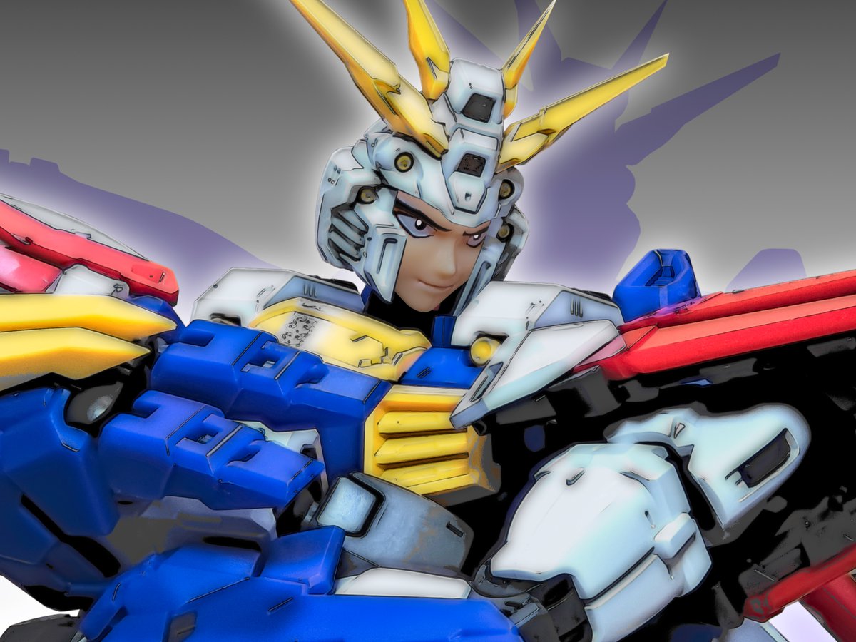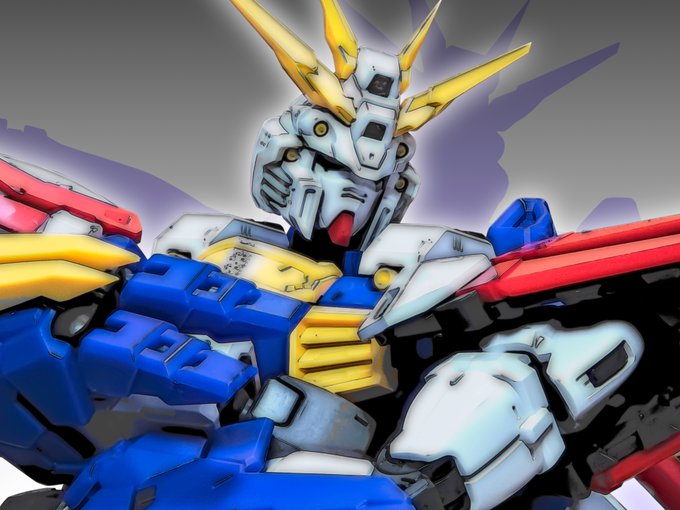 #プラモデルはフィギュアを絡ませるといいらしい 1/60ゴッドにスケールは合わせない遠近法みたいなかんじでMG付属のドモンを改造して抜刀ポーズで劇画調にしあげて、コンセプト画みたいな感じで仕上げました😊 #ゴッドガンダム #ドモン・カッシュ