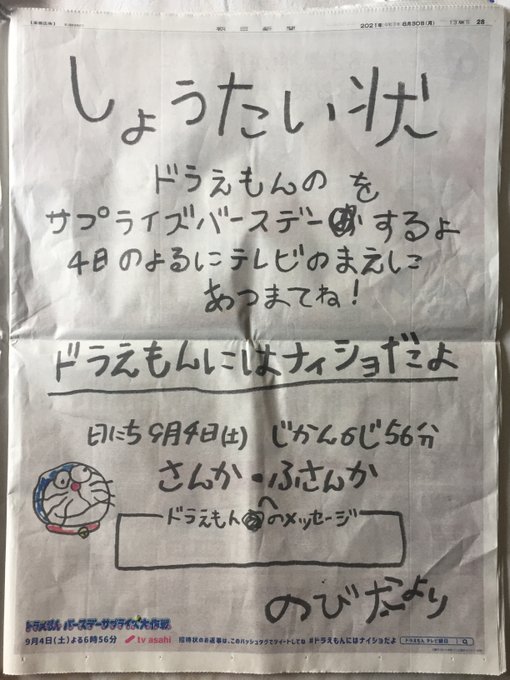 おめでとうと同じくらいのありがとうを君に。 #ドラ誕2021 #ドラえもん誕生祭2021 #ドラえもん生誕祭2021 #ドラズフェス #ドラえもんにはナイショだよ #のび太 #ドラえもん #ファンアート