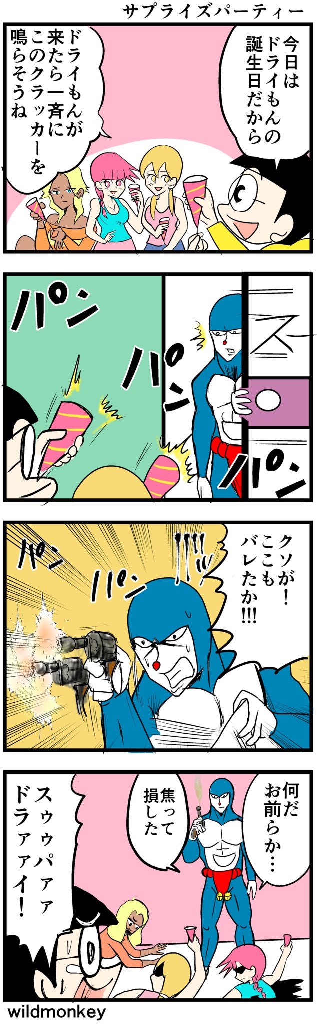 シンDRYもん2 今日はドライもんの誕生日 #4コマ #4コマ漫画 #漫画 #マンガ #漫画が読めるハッシュタグ #創作漫画 #DRYもん #ドラえもんにはナイショだよ #ドラえもん生誕祭2021 #ドラえもん
