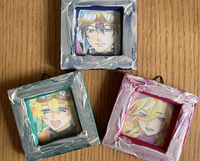 ロレサマムン色に塗装したミニ額に、ロトっ子の肖像画を詰めました❣️😭✨ 自画自賛しますが可愛いー😭✨✨✨ コミケに持っていきます❣️ #ドラクエ水彩画展 #DQ2 #ロト組推しさんと繋がりたい #ドラクエ絵描きはここにいるぞ