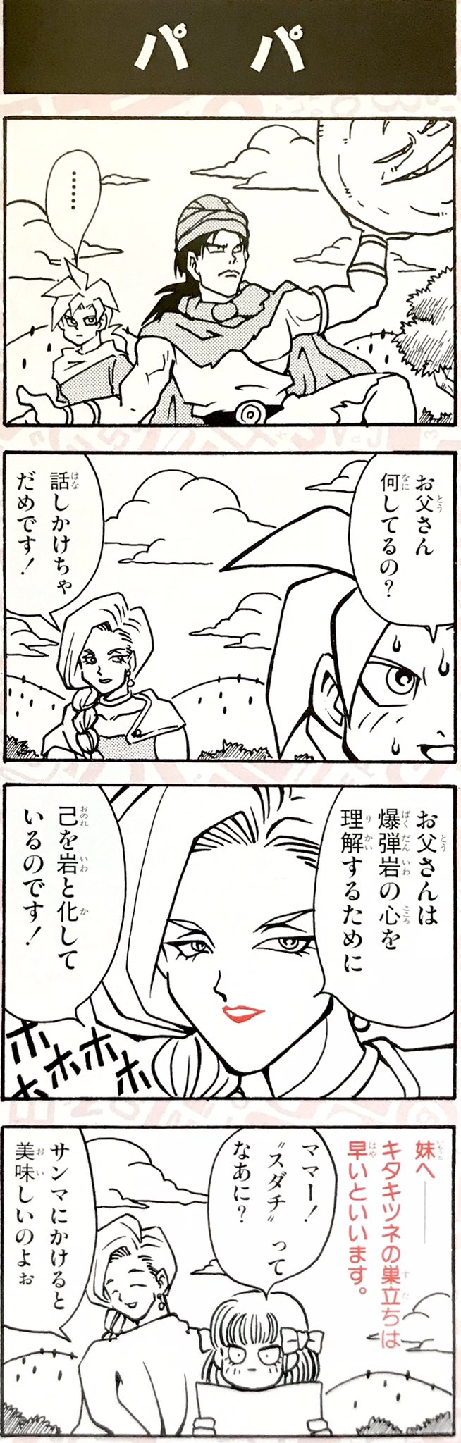SFC版ドラクエ5より、古代の遺跡イベント/イメージボード 言わずもがなのシーンです。パパスの腰辺りにヘンリーがいます。原画の損傷が激しいため、いつもより加工を強くかけております。ご了承ください。 #ドラゴンクエスト5 #ドラクエ5 #DQ5 #ドラゴンクエストv30周年 #ドラクエv30周年 #DQV30th