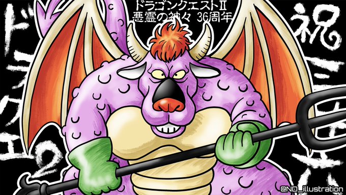 祝ドラクエ2 三十六周年!! アークデーモンのイオナズンの凶悪さ忘れないぞ(^ω^💢) #ドラクエ2祝36周年 #ドラクエ2 #アークデーモン #ロンダルキア #イラスト #illustration