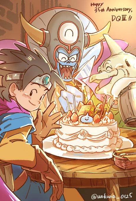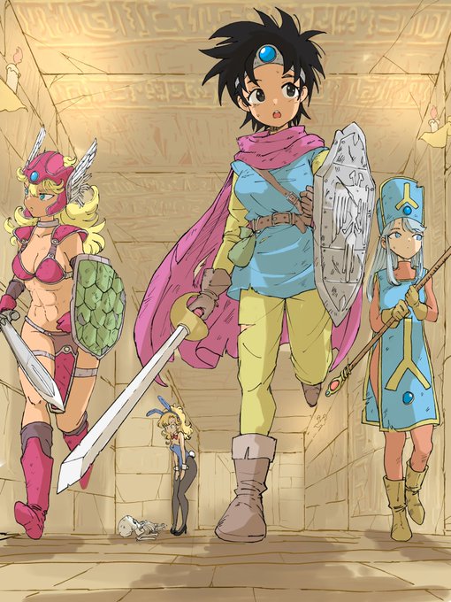 ドラクエⅢ発売35周年おめでとうございます('ω')ノ 今でも至高のRPGであり、自分の創作活動の原点とも言える不朽の名作です。 というわけで当時編成してたパーティ4人を35年振りに描いてみました(*´ω`*) 後発スタート勢だったので悟りの書は未使用なのです← #DQ3_35th #ドラクエ3祝35周年