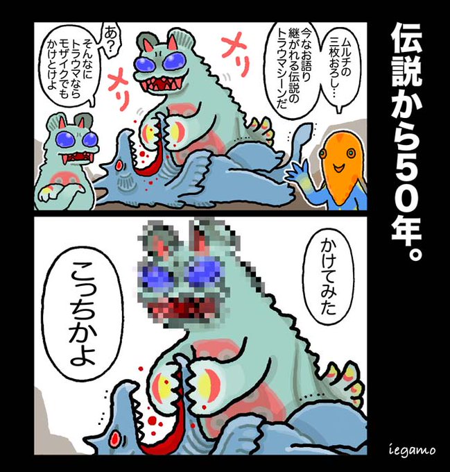 #ウルトラマンA50周年 [太陽の命 エースの命] 50年。 残酷!非道!無慈悲!ムルチ!三枚おろし! ムルチ…テリーマンが新幹線の線路から助けた仔犬くらい唐突&わかりやすい役割を負った登場やな… 何度みても新鮮にグロイ。#ファンアート #ドラゴリー