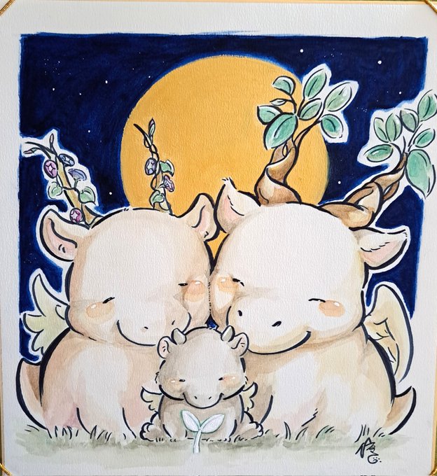 #ドラゴンとまぼろしのけもの達展7 今回の侍わんこメイン作品です🐉 生命力と愛情、成長をテーマに描きました🌱 このツノ朝顔は一日中開いているものも多いとか…愛情と絆をいつまでも繋いでいきたいと願っているのかもしれません。 2/11~13 くまのみギャラリー 大阪市北区豊崎3-20-9 三栄ビル2F