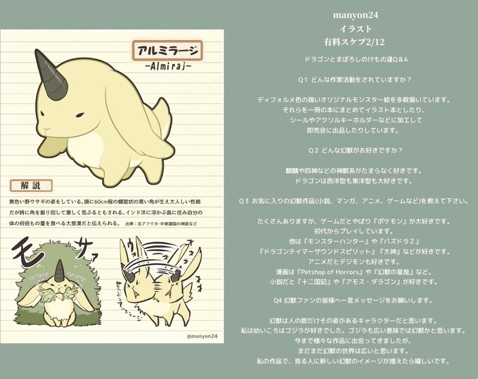 第26回ジオアートワークス企画公募展 🐉#ドラゴンとまぼろしのけもの達展7🦄 大阪中津くまのみギャラリー2/11-13 13-19時最終日17時まで 〈作家15名様ご紹介Q&AをHPに掲載〉 作家様ご紹介 manyon24さん@manyon24 🐉有料スケブ2/12 #イラスト #ドラゴン #幻獣 #公募展 hookjawgeoartworks.jimdosite.com/geoatrworksdra…