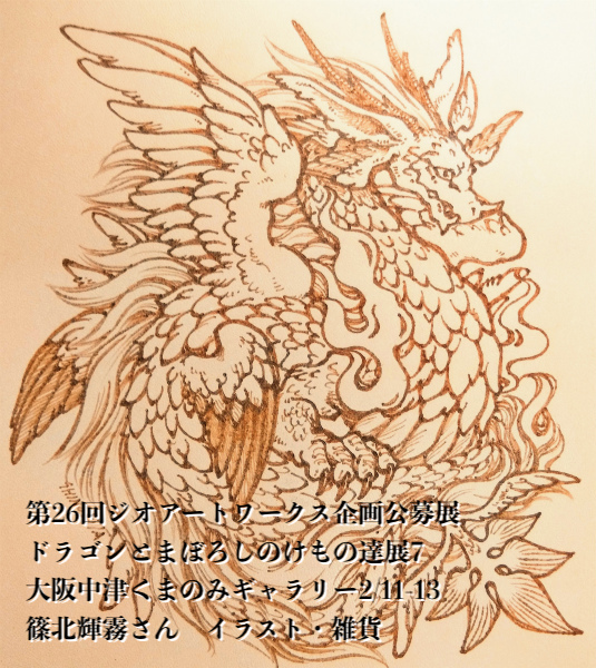 第26回ジオアートワークス企画公募展 🐉#ドラゴンとまぼろしのけもの達展7🦄 大阪中津くまのみギャラリー2/11-13 13-19時最終日17時まで 〈作家15名様ご紹介Q&AをHPに掲載〉 作家様ご紹介 篠北輝霧さん@shinokita_te #イラスト #雑貨 #ドラゴン #幻獣 #公募展 hookjawgeoartworks.jimdosite.com/geoatrworksdra…