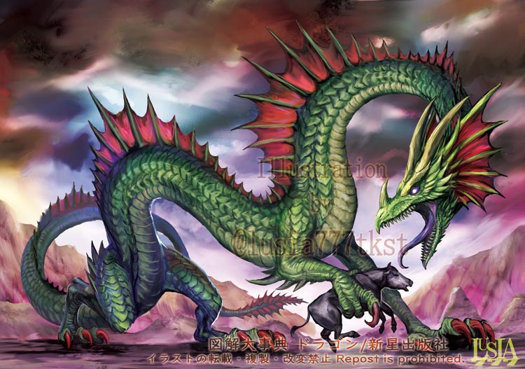ドラゴン図鑑のお仕事でちょっぴり悪そうなドラゴンさんのイラスト、たくさん描いたのでどうぞよろしくお願いします🐲 オールフルカラーで、図解大事典ドラゴン/新星出版社さまより発売中です🌟 #ドラゴンのイラスト