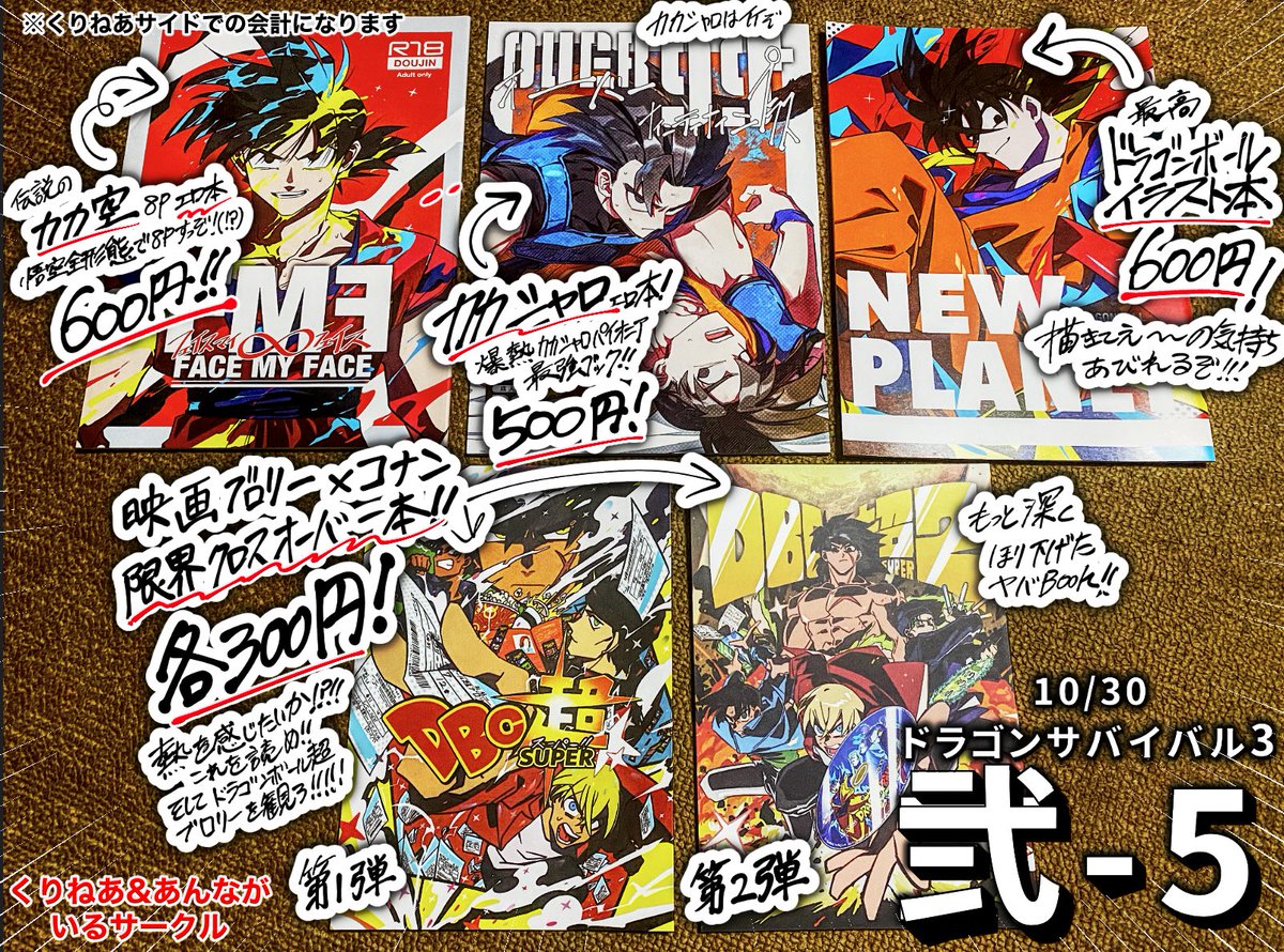 恒例!直前お品書き!明日はよろしくお願いします!スパヒロ後最初のオンリー!会場の熱気が凄そうです!色んな方とお話しできるの楽しみです!気軽にお声がけください〜! ※合同サークルですが、あんな、くりねあで会計が分かれています。お気をつけ下さい! #ドラゴンサバイバル3