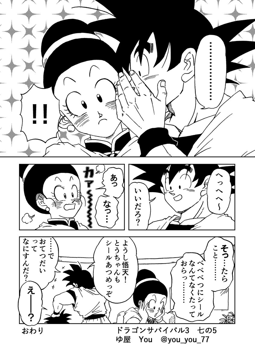 #ドラゴンサバイバル3 新刊①のサンプルです(1/2) 「なないろCANDY」 本文108P(カラー口絵4P)/A5/¥700↑↓/全年齢/公式CP 念願の孫家・悟チチ・魔師弟・未来師弟中心の再録加筆+描き下ろし(悟チチ・飯ビー・未来師弟)22Pを加えた集大成です😊 さらにゲスト様あり!ツリーに繋げます✨ twitter.com/_BIBILIAN/stat…