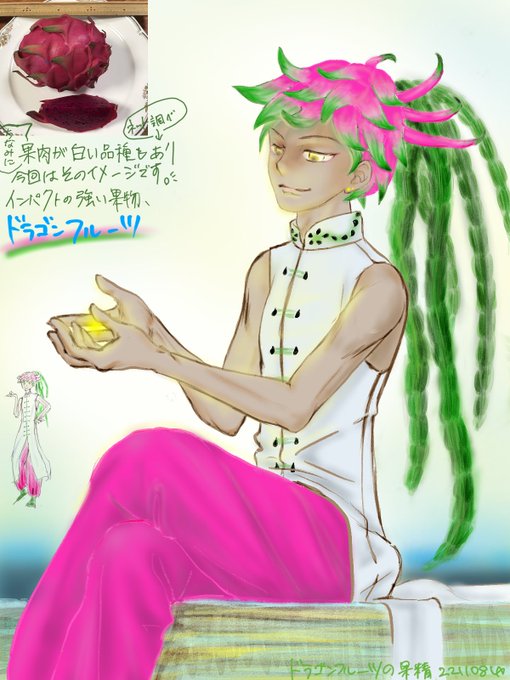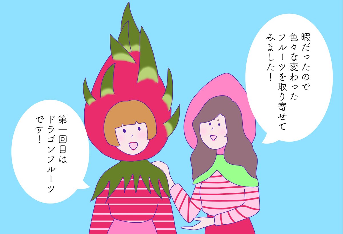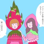 変なフルーツをご紹介🌟 今回は「ドラゴンフルーツ」🐲 #桃源郷ガールズ #ドラゴンフルーツ #イラスト #お絵描き #漫画 #1日1絵 #イラスト好きな人と繋がりたい #絵描きさんと繋がりたい
