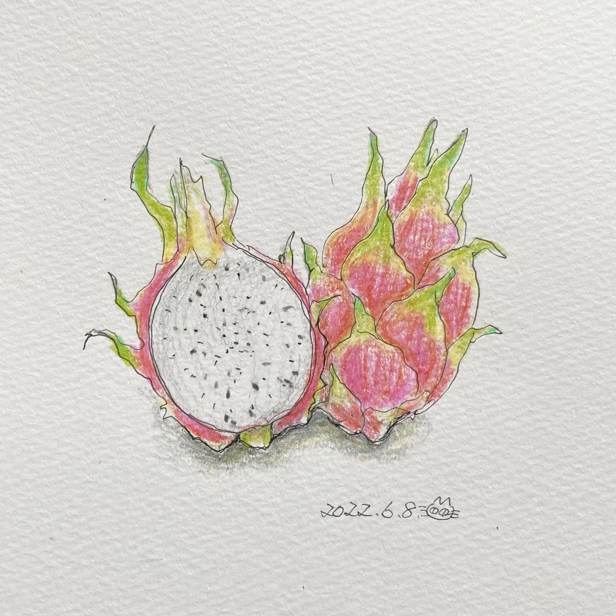 #Sketchドロー #果物 #pixiv今日のお題 #sensei #ドラゴンフルーツ #rkgk ドラゴンフルーツ(白)を食べたら無味だったんだよね。。 外側の色合い好き sketch.pixiv.net/items/63544678…