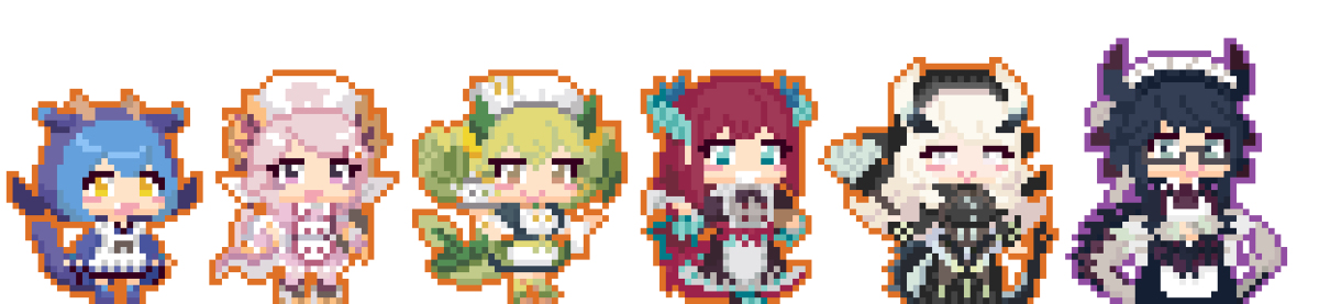 ドット絵 遊戯王 ドラゴンメイド #ドット絵 #遊戯王 #ドラゴンメイド(遊戯王) #ドラゴンメイド・ラドリー #ドラゴンメイド・ナサリー #ドラゴンメイド・パルラ #ドラゴンメイド・ティルル #ドラゴンメイド・チェイム pixiv.net/artworks/97232…