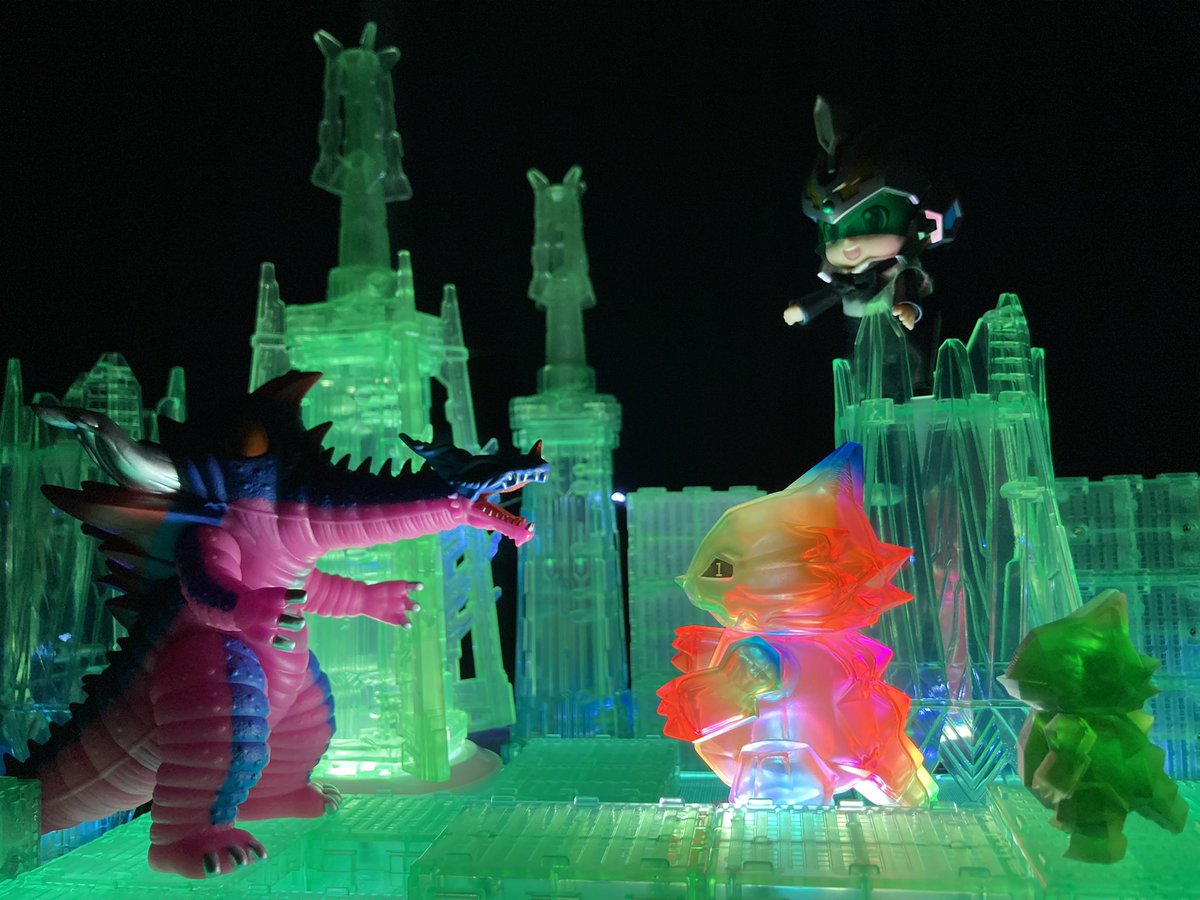 5/8(日) #夜のフィギュア撮影会 お題『母』 #おもちゃ撮影会 テーマ「母2」 気炎万丈怪獣グールギラス出現! 母なる大地《サイバースペース》を守るため、ドラポリゴン&ダヨッドマンのコンビネーションアタック炸裂💥 敵怪獣を無力化し、見事大勝利✨ #ドラポリフォトコン #ミクダヨー #グリッドマン
