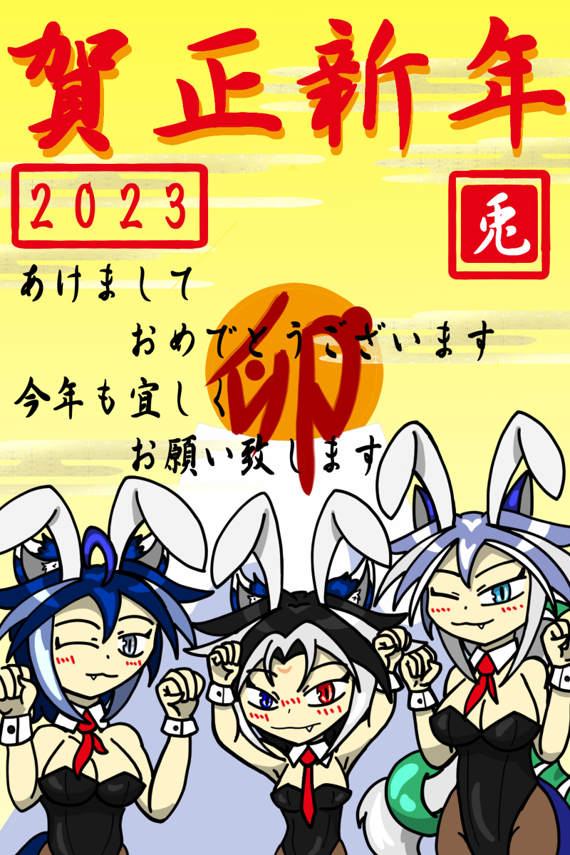 2023年 年賀状 あけましておめでとうございます #オリジナル #ドラン・クレフティス #ドラープ・クレフティス #ドラム・クレフティス #バニーガール #年賀状 #モンスター娘 #TSF pixiv.net/artworks/10410…