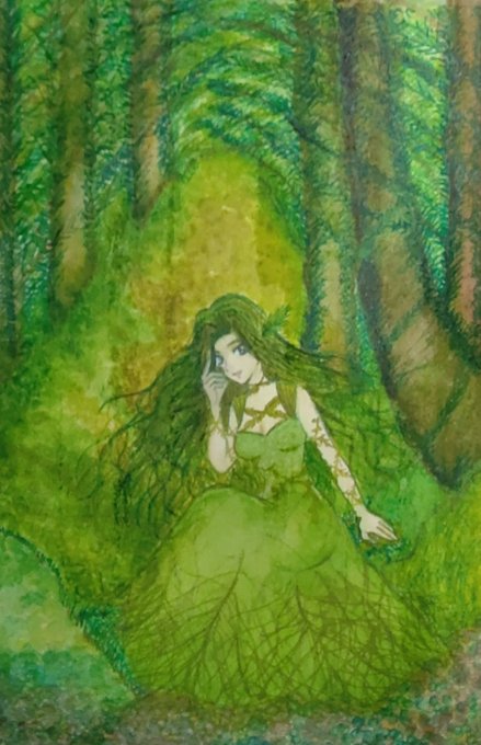 完成しました。 ホントに自然に溶けちゃったね(笑) ここまで導いてくれたドリアードに感謝です✨✨ #イラスト #イラスト好きな人と繋がりたい #イラストレーターさんと繋がりたい #絵描きさんと繫がりたい #illustration #ドリアード