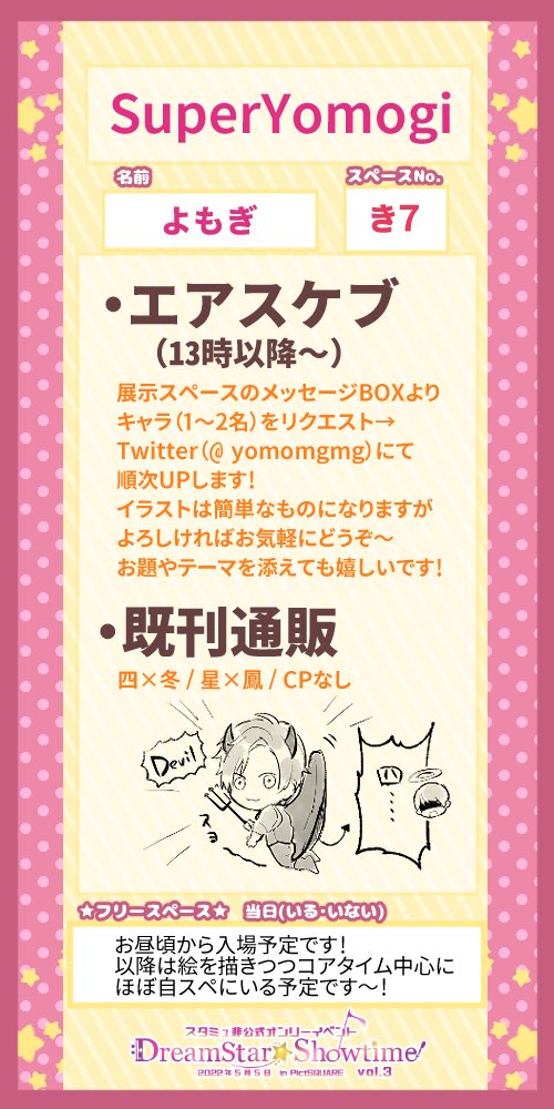 あした【こ9】でスペース頂いてます! イベント用の描き下ろし間に合いました !15Pあるよ!表紙も描いたよ 期間限定のものもあるけど既刊もweb再録するのでお時間ありましたら遊びに来てください〜💫 #ドリスタオンリー3