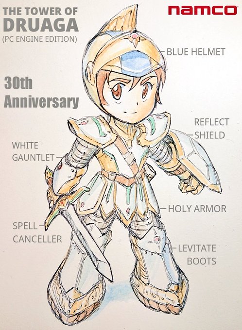 ㊗ PCエンジン版「ドルアーガの塔」1992年6月25日の発売より31周年! 画像はPCエンジン版制作時に描き起こしたギルの初期状態三面図で、「ナムコ ミュージアム オブ アート 第11回 ドルアーガの塔 (1984年)」からの抜粋になります⚔ #PCエンジン #ドルアーガの塔 youtube.com/watch?v=kr339E…