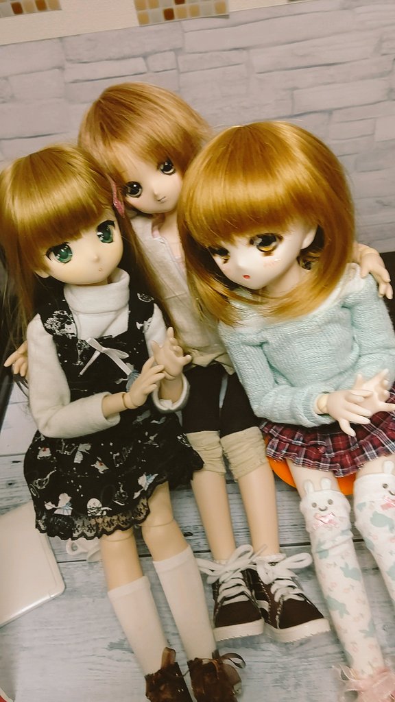 #今夜のドール撮影120分一本勝負 【よりそう】 我が家の子達は、寄り添って座るのが好きみたい(๑♡∀♡๑) #うちのこかわいい #MDDレナ #ドルチェドール #あーすりっ娘 #DDSセーラーマーキュリー #DDSキズナアイ