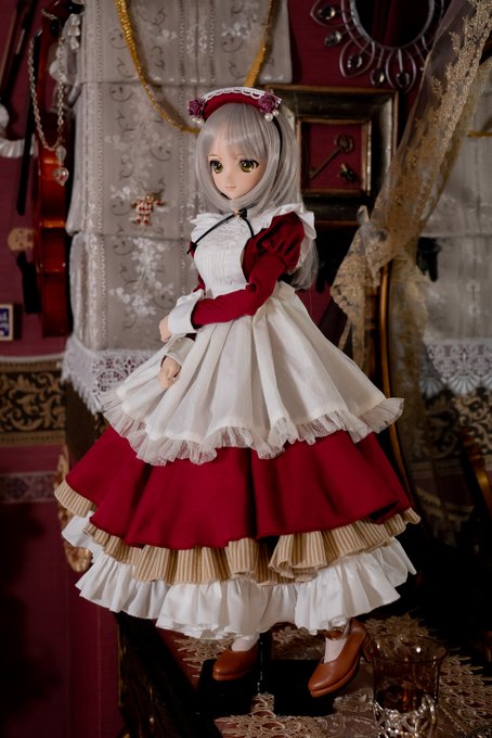 【ドルパ頒布物②】MDDクラシカルメイドセット こちらもMDDサイズで新しくワインレッド色をラインアップに加えました。 スカート部分は円形とおりますので、座っても広がります。 #ドルパ_ディーラー #ドルパ47