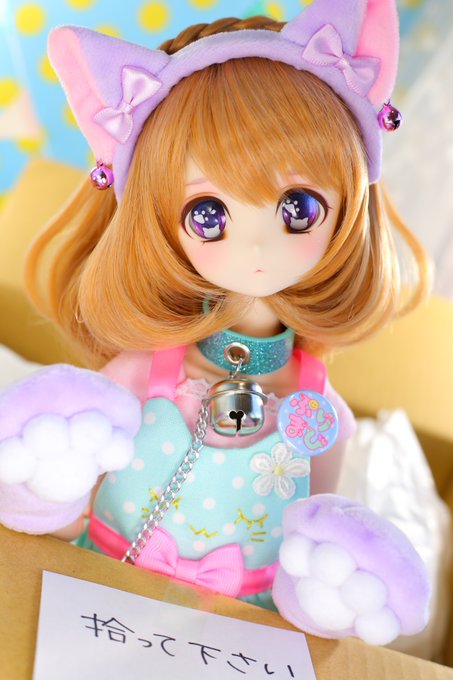 12/18東京ドルパに連れていく DWC-01ヘッドちゃん🐱💕 お迎えを待っています🥺✨ ニャロペットも1着だけ持っていきます! #ぷりまびっこ #ドルパ48 #ドルパ_ディーラー #insomnia_wig